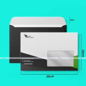 Với tiêu chuẩn kích thước, chiều dài 34cm x cao 25cm và nắp 3,5cm . Phong bì thư dạng này thường được sử dụng để đựng những tài liệu có kích thước A4 hay những cuốn catalogue của doanh nghiệp.