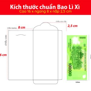 Kích thước: 8 x 16 cm (vừa vặn để đựng tờ 500.000đ và 2 USD)