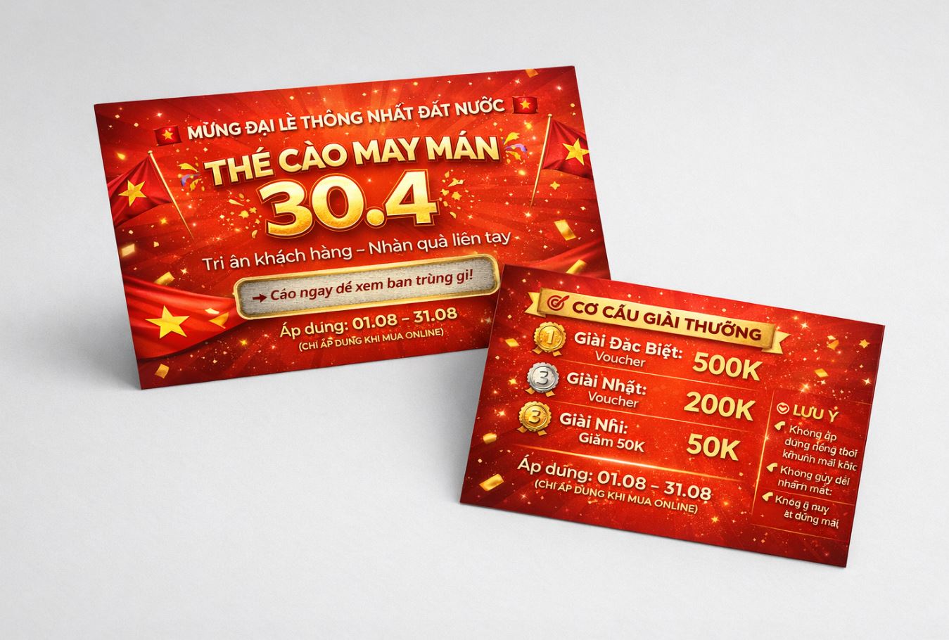 Vậy Nên cần chuẩn bị ngay từ bây giờ và chọn nơi in: Làm nhanh, Nhận số lượng ít, Hỗ trợ thiết kế như chúng tôi. Muốn bán tốt mùa 30/4, đừng chỉ tập trung vào sản phẩm. Hãy đầu tư thêm vào bộ nhân diện thương hiệu:Túi giấy đẹp, Voucher thông minh,Tem nhãn chỉn chu. Những thứ này không tốn quá nhiều tiền, nhưng lại giúp shop tăng doanh thu rõ rệt.