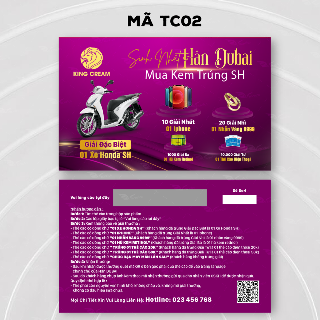 Số lượng ít khách hàng có thể mua decal dán cào để tiết kiệm hơn hoặc Vinanetco có hỗ trợ báo giá in ấn thẻ cào số lượng ít hoặc in thẻ cào với số lượng lớn ( offset ) , thiết kế làm trọn gói với giá thành hợp lý và tiết kiệm nhất