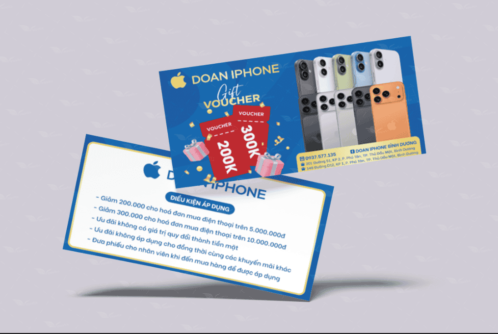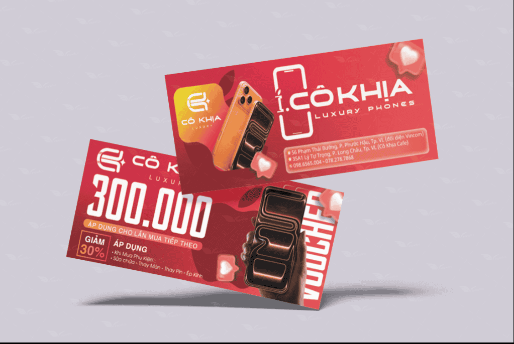 Nếu bạn đang kinh doanh điện thoại, phụ kiện hoặc sửa chữa smartphone, hãy đầu tư thiết kế và in voucher chuyên nghiệp ngay từ hôm nay để tối ưu hiệu quả kinh doanh năm 2026.